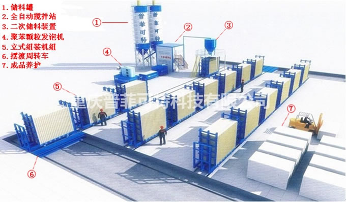 5.成組立模法生產(chǎn),震動落料成型,采用機組流水工藝,墻板平整度好、尺寸準確度高